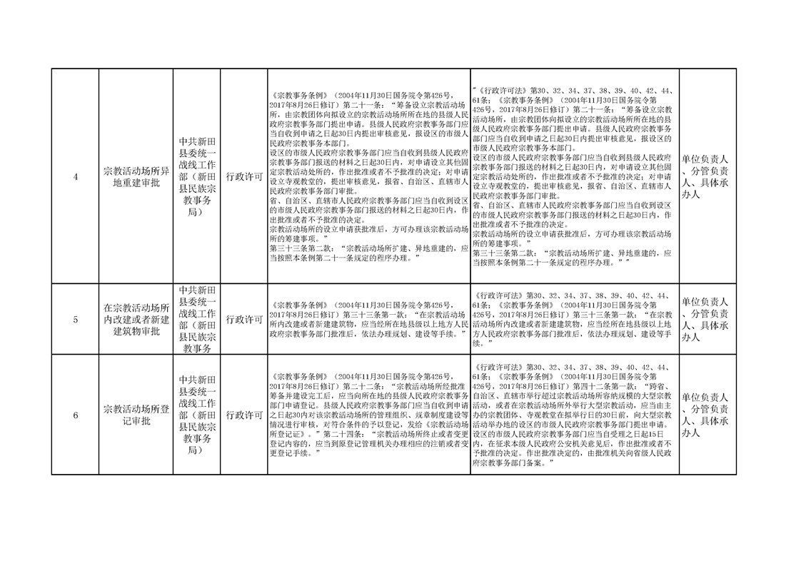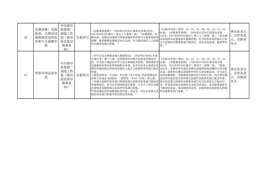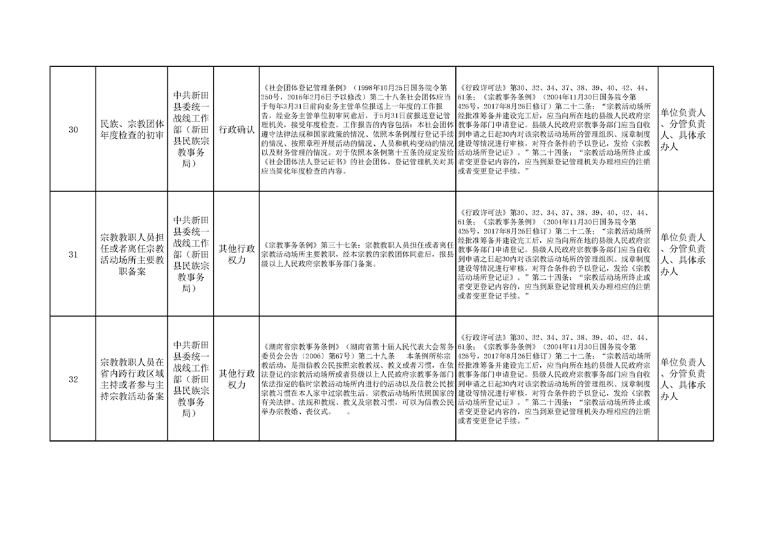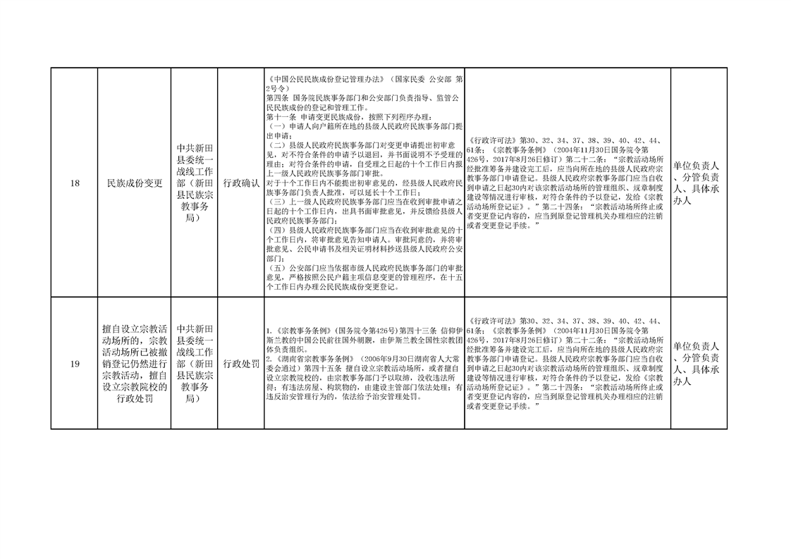 中共开云真人足球委统一战线工作部(开云真人足球民族宗教事务局)权责清单