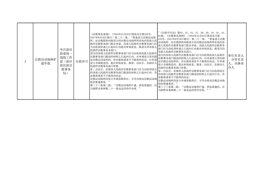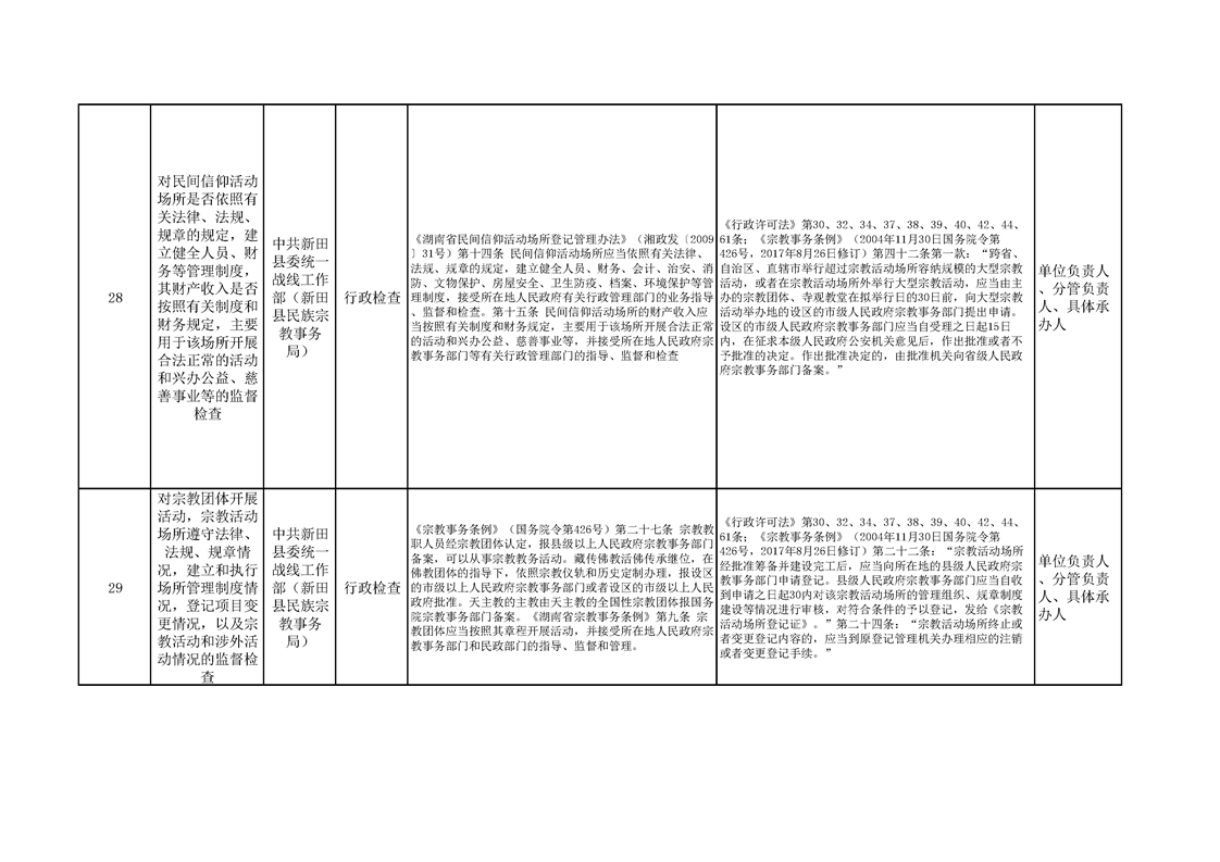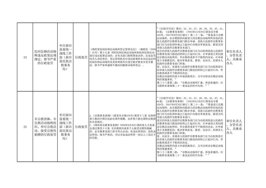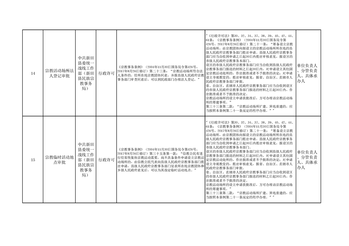 中共开云真人足球委统一战线工作部(开云真人足球民族宗教事务局)权责清单
