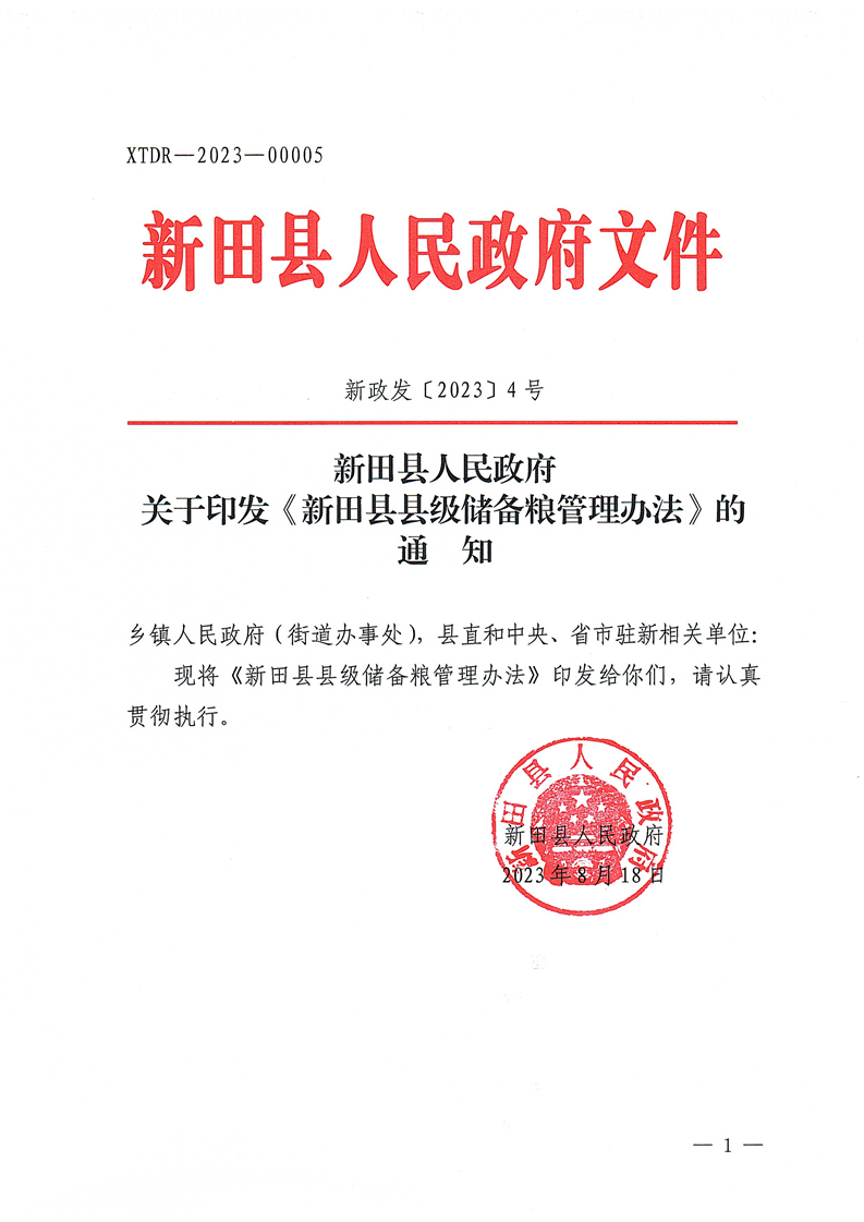 关于印发《开云真人足球县级储备粮管理办法》的通知