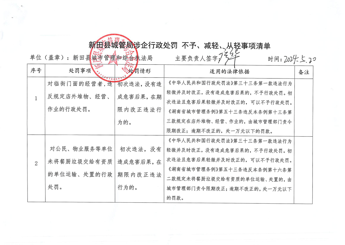 开云真人足球城管局涉企行政处罚不予、减轻、从轻事项清单
