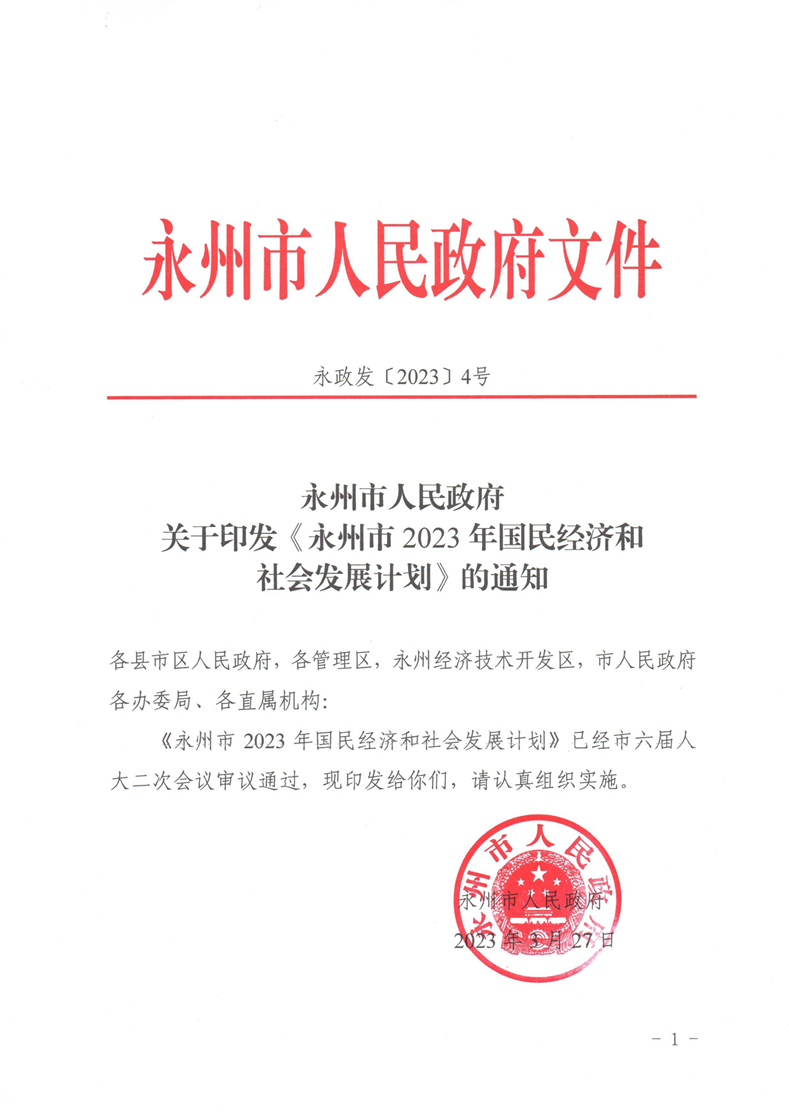 关于印发《永州市2023年国民经济和社会发展计划》的通知