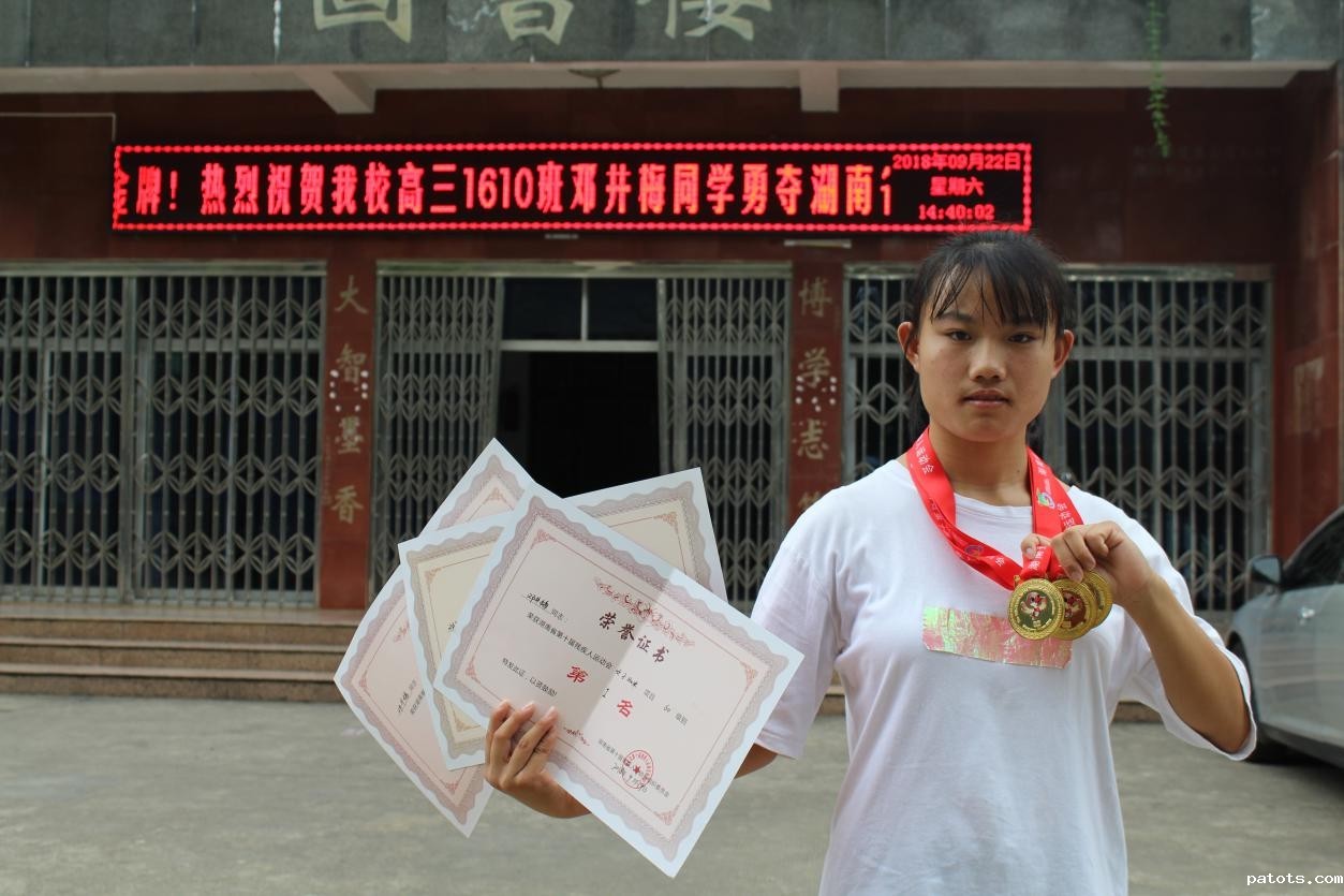 在近日结束的湖南省第十届残运会田径比赛中,新田二中高三学子邓井梅不畏强手,奋力拼搏,战胜众多强手,勇夺女子60级100米、200米、800米三枚金牌,并获得省残运会优秀运动员称号,为永州代表队赢得了荣誉。