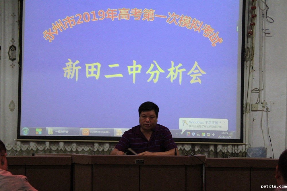 为提高高考备考效率,具体分析考试质量,适当调整教学方法,增强教师信心,鼓舞高考斗志,10月9日下午,新田二中在大会议室举行永州市2019届高三一模分析会。会议由学校校长助理、办公室主任谢际军主持,县教研室领导刘国华、肖付军,该校校级领导、高三全体教师、专家团队成员与会。