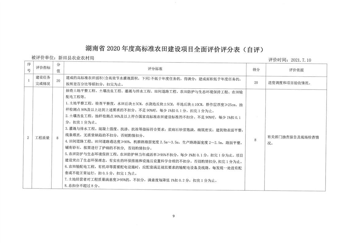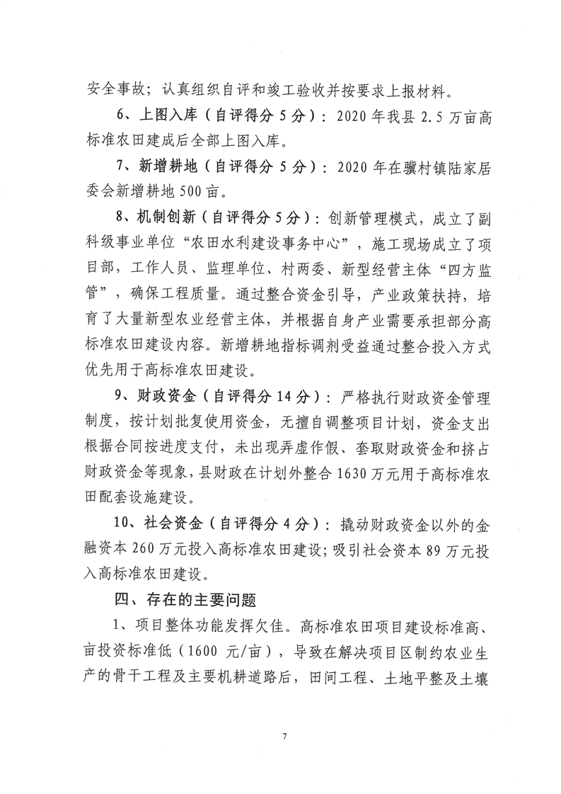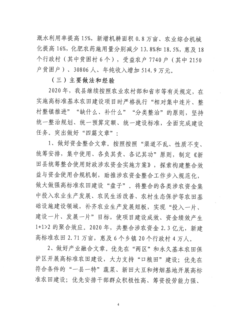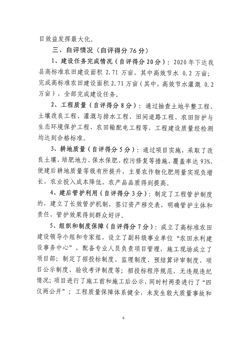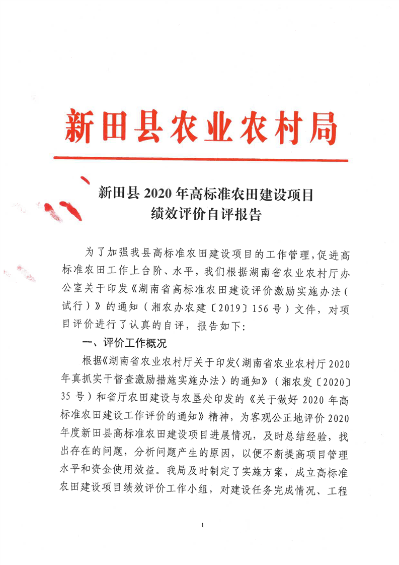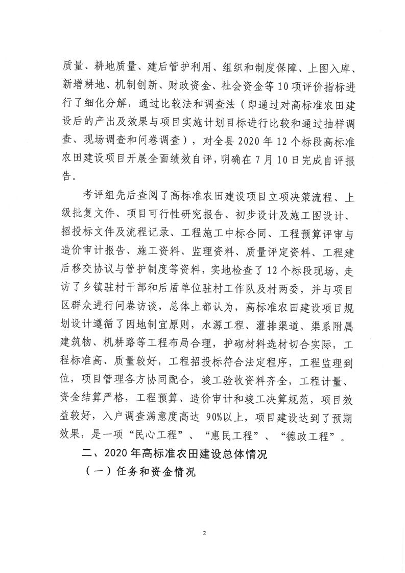 开云真人足球2020年高标准农田建设项目绩效评价自评报告
