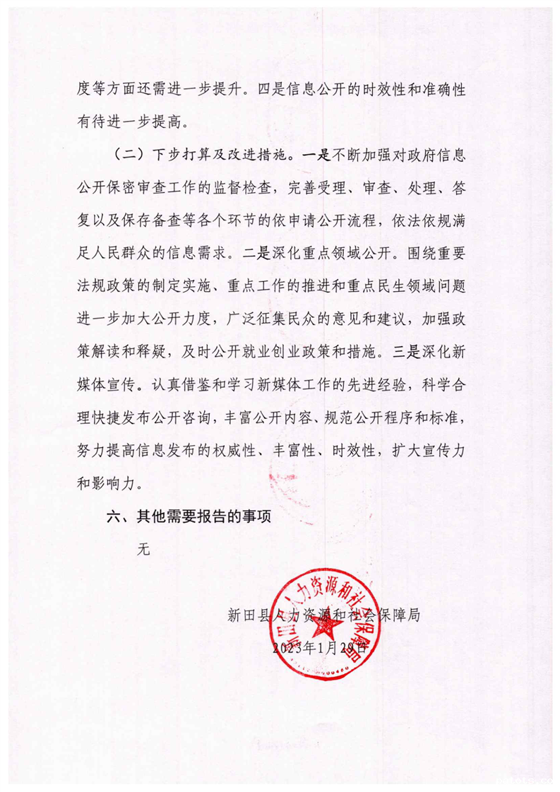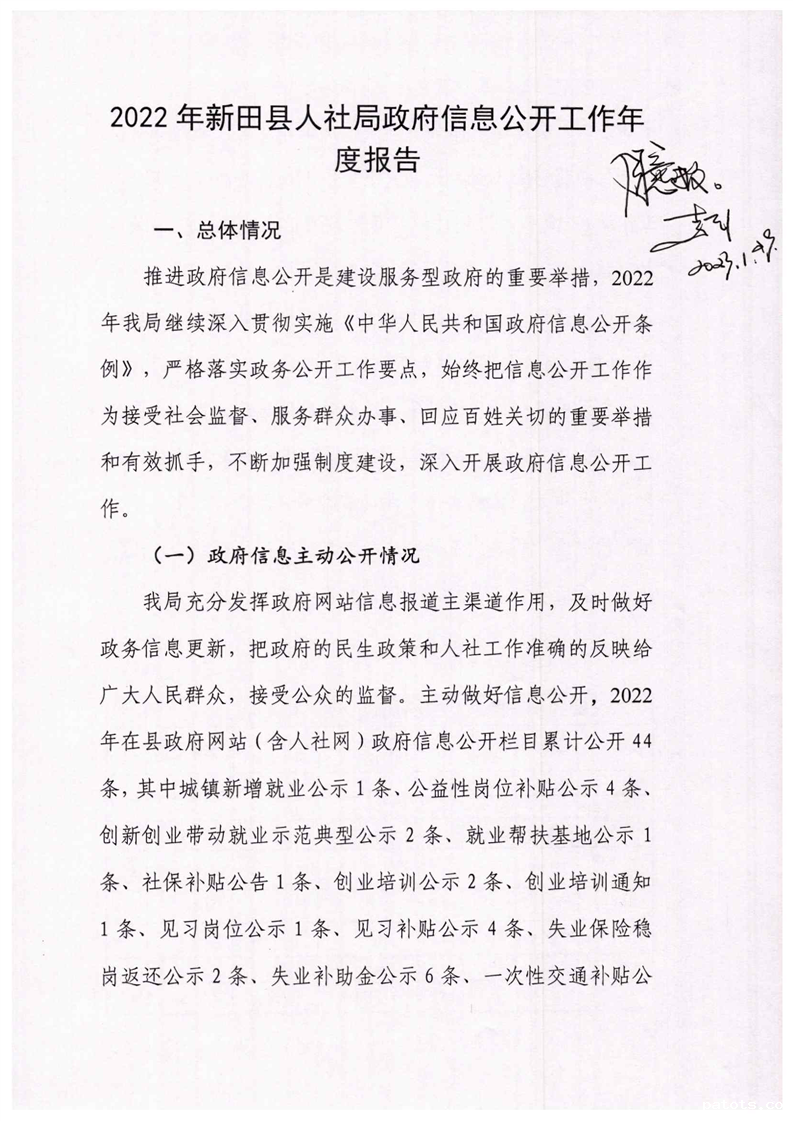 2022年开云真人足球人社局政府信息公开工作年度报告