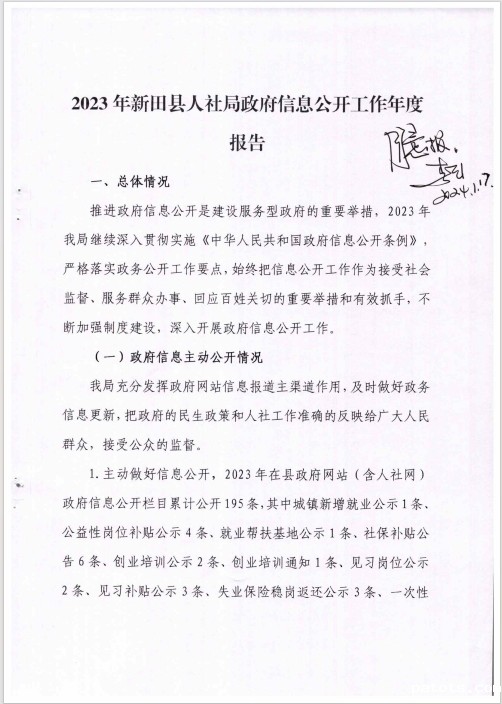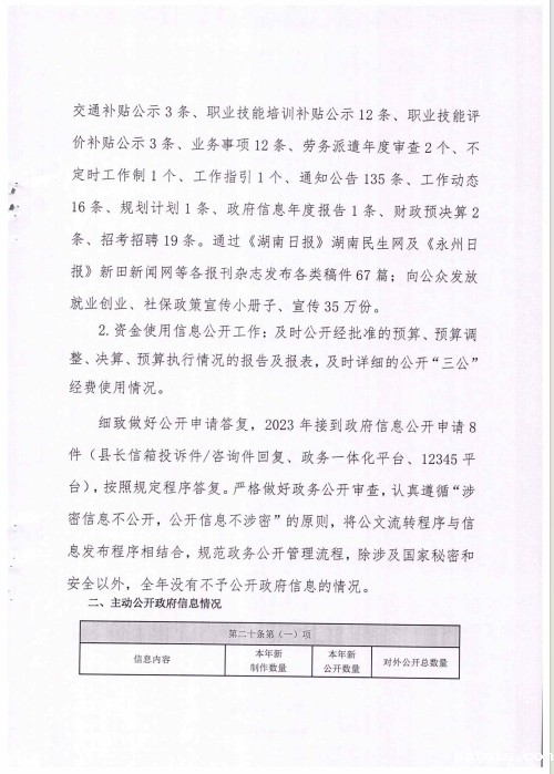 2023年开云真人足球人社局政府信息公开工作年度报告