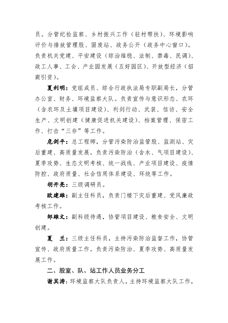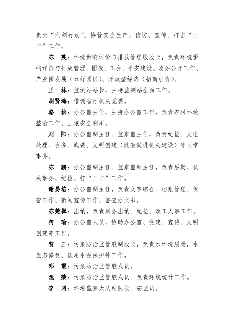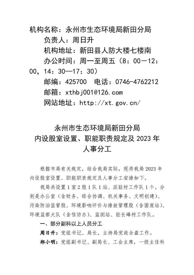 永州市生态环境局新田分局内设股室设置、职能职责规定及2023年人事分工