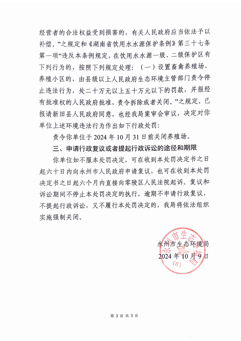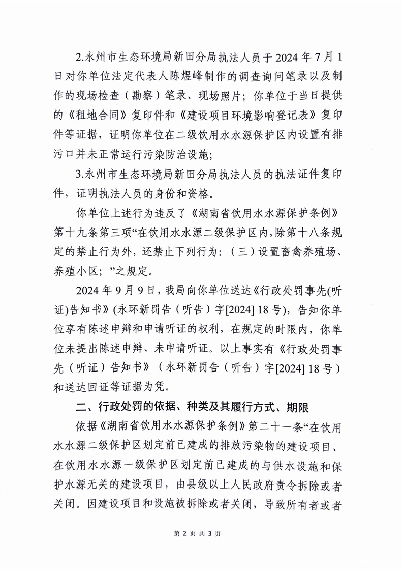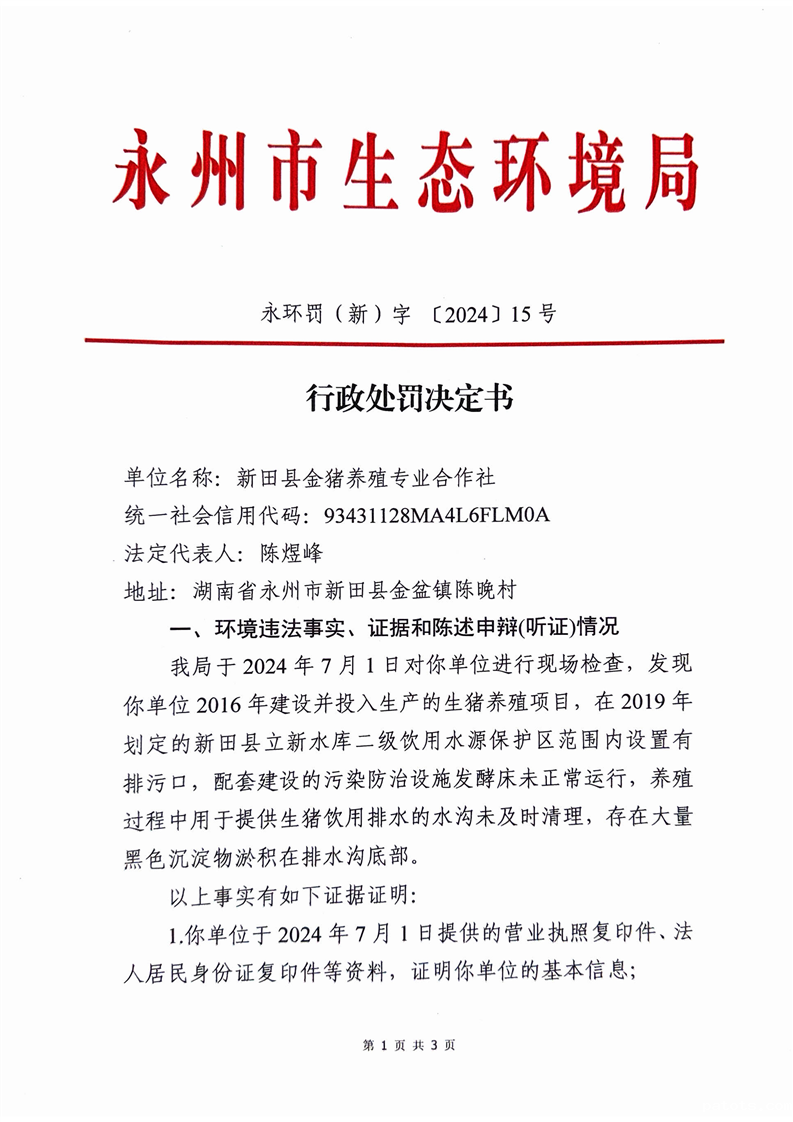 开云真人足球金猪养殖专业合作社在饮用水源保护区内建设养殖场行政处罚决定书
