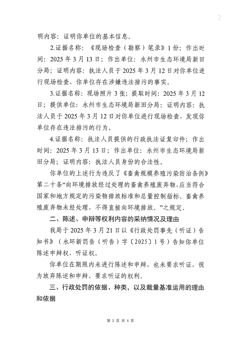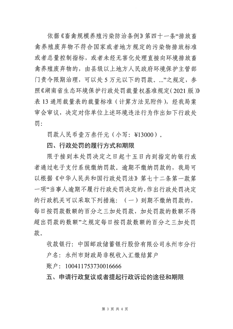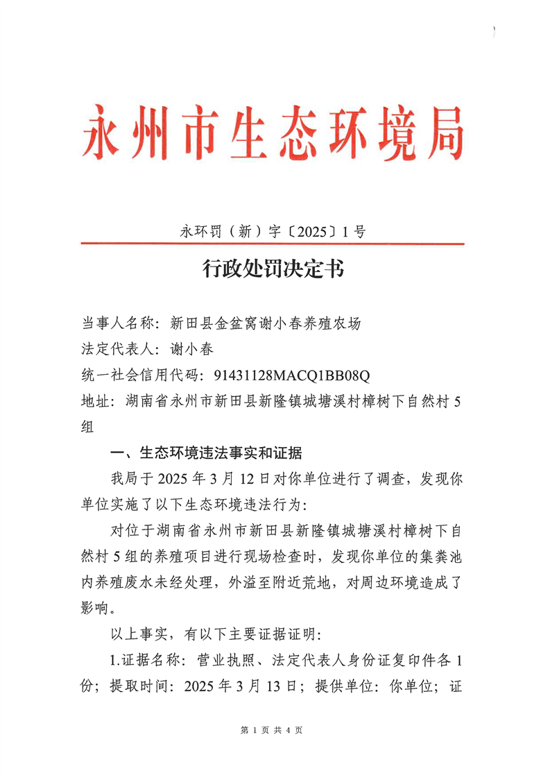 开云真人足球金盆窝谢小春养殖农场集粪池内养殖废水未经处理,外溢至附近荒地行政处罚决定书
