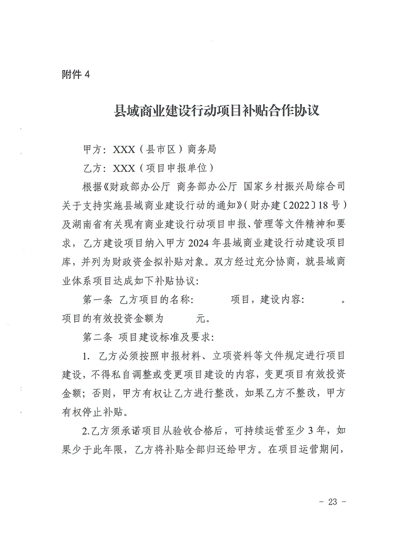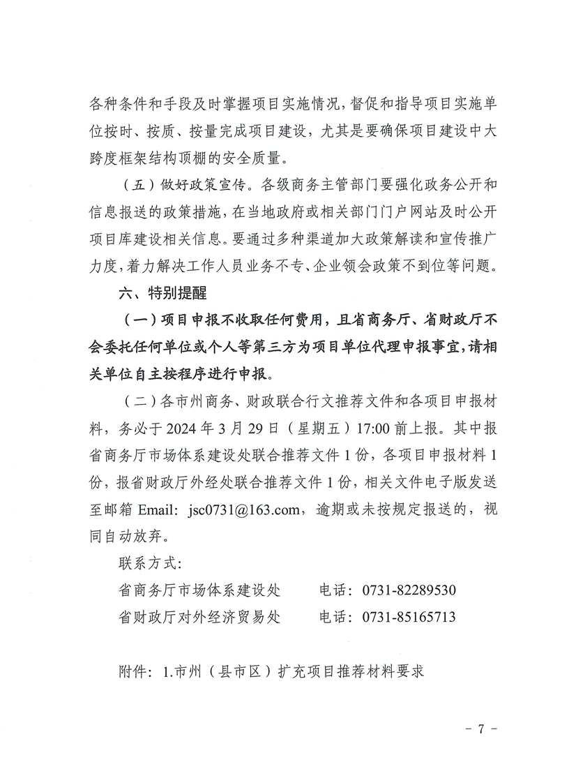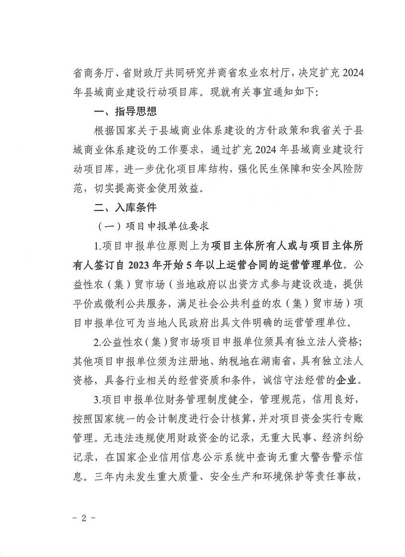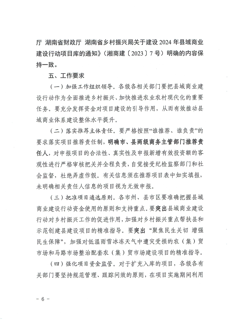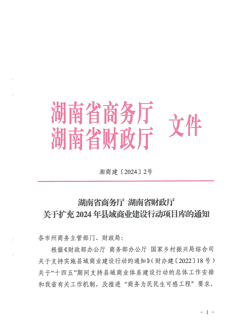 湖南省商务厅 湖南省财政厅 关于扩充2024年县域商业建设行动项目库的通知